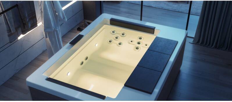 Il s'agit d'une baignoire plus ou moins grande, équipée de buses produisant des jets d'eau et des jets d'air.
